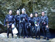 マツオ姉はラウ&グロへ。ラウラウは雨の影響があり、透明度もいつもより幾分か良くなかったようです。2本目のグロットでは、ダイスケ組と合流してみんなで記念撮影をした後、穴付近でカワイイ魚達と遊んできたようです。