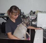 ←本日は店番専門となりましたマスコット犬タイガさん。講習組は午後から学科を始めたのですが・・・あまりにも仕事熱心な番犬となったタイガさん。ウルサイかも・・・とつながれました。タイガは悪くないけど講習が進まないのゴメンね。苦笑。