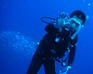 2ダイブ目のダンプコーブではカメを探して行きました。無事にカメと遭遇できたのですが、こちらも他のグループに知らせている間にタイムリミットがせまって浅いところへ行くことになりました。近くに誰もいなければ自分達の貸切で遊ぶのですが・・・大物に遭遇したときは皆に教えてあげたい!と思うマツオ姉でした。