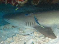 さて、1ダイブ目のバンザイは一番乗りできませんでしたが、大物大接近で楽しめました。巨大妊婦のマダラトビエイ+チビタイプのマダラトビエイ、巨大イソマグロ+中サイズのイソマグロ、大きなネムリブカも泳いで・・・バンザイ、最高です!! あまりにも楽しくて休憩中にデジカメ画像チェックをしていたら・・・・画像を全て削除すると言う恐ろしいことをしてしまいました。「涙のバンザイ」の一言です。←トホホホホホ・・・。 気を取り直せない状態まで落ち込みましたが、2ダイブ目のスポットライトで激写しまくりのマツオ姉でした。