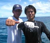 こちらはとてもマッタリと穏やかな海況でしたのでラッキーでした。しかも生き物がスゴイ!!冬場のベストシーズンよりも良いかも・・・。なかでも2cm&6cmのイロブダイ幼魚にはノックアウトです。「アナナタチ、カワイスギル♪」