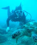午後からは「10年ぶりに遊ぶぞ!」と気合の入ったお母さんの登場です。おりこうさんのお子さんは託児所に預けられ、心置きなく初ダイビングです。「本当に?生まれて初めてダイビングしたの???」と何度も聞いてしまうほどにダイビングがお上手な方です。しかも、カメ3連発(うち1匹はラウラウの主ガメ)で、大はしゃぎで遊んできました。