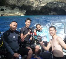 午後からはパウパウ&グロットへ!生まれて初めての方&沖縄で体験ダイビングしてパニックになったと言う方の体験ダイビングです。・・・まずはパウパウの浅瀬で練習です。「すぐに顔が出せるから安心でしょ!」と泳ぎまくってきました。パニック経験のお客様も「楽しい!面白い!」と大喜びされて、いざグロットへ!! しかし、お二人とも耳抜きができず・・・水面近くをダイビングしてきました。快晴で気持ちの良いグロットで、お客様の記念撮影ができて良かったです。マツオ姉でした!(パソコン業務放棄で休養します。)
