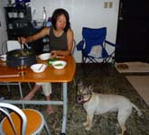 ←風邪を引いて寝込んでいるシゲさんと生姜汁たっぷりの鍋を食べようとしましたが・・・オナカもやられた本日のシゲさん。女同士でヘルシー生姜鍋をしたのでした。ちなみに肉入りなのでシゲさんの分はマスコット犬タイガちゃんが食べました。